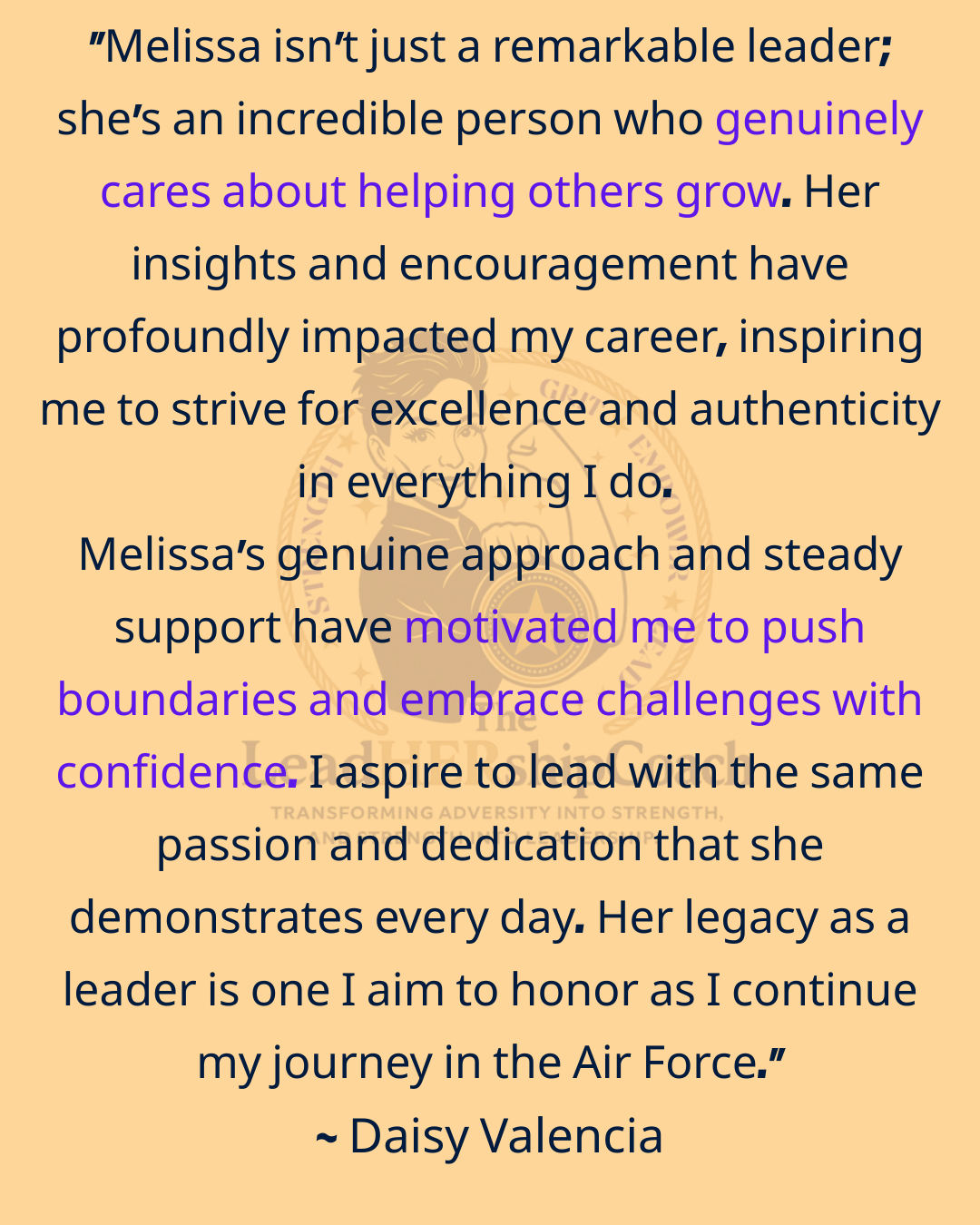 I’m not just a coach… I’m a real leader with real leadership experience. I’ve sat at tables where I was the only woman in the room, led through the pressure of no-fail missions, and felt the weight of decision-making at the top. I understand the highs of breakthrough moments and the lows of carrying responsibility alone. That’s why my coaching is rooted in empathy, resilience, and purpose. I believe that when you take care of your people, they take care of the mission, and that principle guides everything I do. My approach blends strategic insight with emotional intelligence, helping leaders rise with authenticity and lead in a way that truly connects.